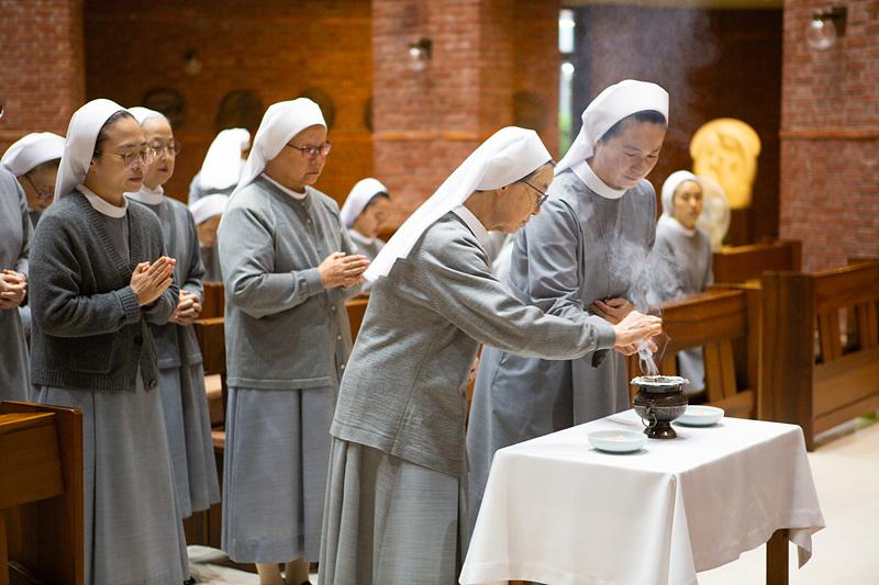 조상님들과 목요한 몬시뇰, 별세한 본회 회원, 별세한 자매회 회원을 기리는 분향과 연도를 바쳤습니다.