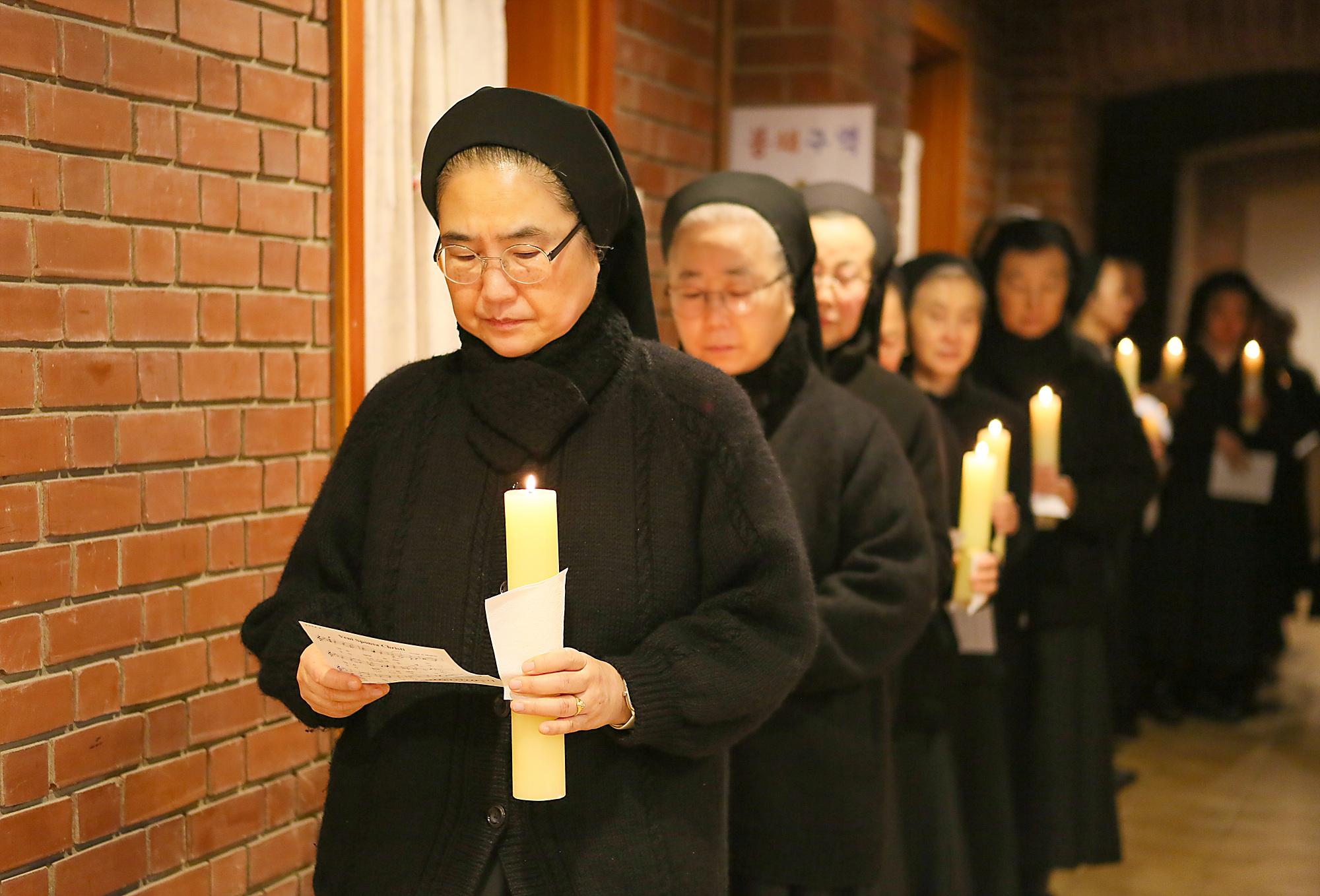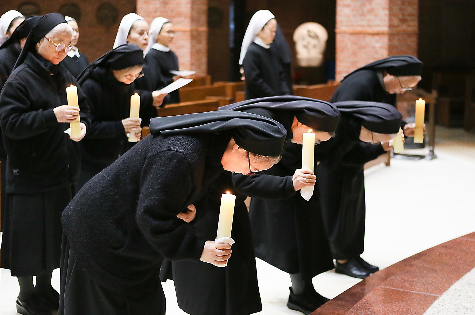 일생을 봉헌한 수도자들도 봉헌의 상징인 초를 들고