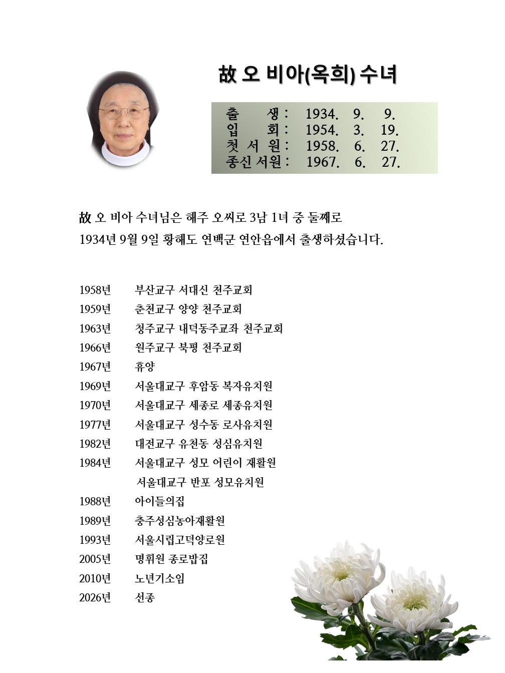 주님, 오 비아 수녀에게 영원한 안식을 주소서