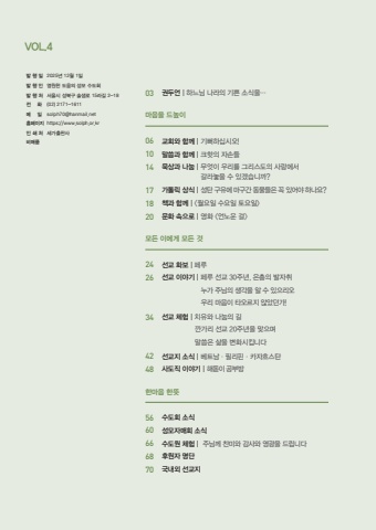 03 %uad8c%ub450%uc5b8%u2503%ud558%ub290%ub2d8 %ub098%ub77c%uc758 %uae30%uc05c %uc18c%uc2dd%uc744%u2026%ub9c8%uc74c%uc744 %ub4dc%ub192%uc77406 %uad50%ud68c%uc640 %ud568%uaed8%u2503%uae30%ubed0%ud558%uc2ed%uc2dc%uc624!10 %ub9d0%uc500%uacfc %ud568%uaed8%u2503%ud06c%ud56b%uc758 %uc790%uc190%ub4e414 %ubb35%uc0c1%uacfc %ub098%ub214%u2503%ubb34%uc5c7%uc774 %uc6b0%ub9ac%ub97c %uadf8%ub9ac%uc2a4%ub3c4%uc758 %uc0ac%ub791%uc5d0%uc11c%uac08%ub77c%ub193%uc744 %uc218 %uc788%uaca0%uc2b5%ub2c8%uae4c?17 %uac00%ud1a8%ub9ad %uc0c1%uc2dd%u2503%uc131%ud0c4 %uad6c%uc720%uc5d0 %ub9c8%uad6c%uac04 %ub3d9%ubb3c%ub4e4%uc740 %uaf2d %uc788%uc5b4%uc57c %ud558%ub098%uc694?18 %ucc45%uacfc %ud568%uaed8%u2503<%uc6d4%uc694%uc77c %uc218%uc694%uc77c %ud1a0%uc694%uc77c>20 %ubb38%ud654 %uc18d%uc73c%ub85c%u2503%uc601%ud654 <%uc5b8%ub178%uc6b4 %uac78>%ubaa8%ub4e0 %uc774%uc5d0%uac8c %ubaa8%ub4e0 %uac8324 %uc120%uad50 %ud654%ubcf4%u2503%ud398%ub8e826 %uc120%uad50 %uc774%uc57c%uae30%u2503%ud398%ub8e8 %uc120%uad50 30%uc8fc%ub144, %uc740%ucd1d%uc758 %ubc1c%uc790%ucde8%ub204%uac00 %uc8fc%ub2d8%uc758 %uc0dd%uac01%uc744 %uc54c %uc218 %uc788%uc73c%ub9ac%uc624%uc6b0%ub9ac %ub9c8%uc74c%uc774 %ud0c0%uc624%ub974%uc9c0 %uc54a%uc558%ub358%uac00!34 %uc120%uad50 %uccb4%ud5d8%u2503%uce58%uc720%uc640 %ub098%ub214%uc758 %uae38%uae50%uac00%ub9ac %uc120%uad50 20%uc8fc%ub144%uc744 %ub9de%uc73c%uba70%ub9d0%uc500%uc740 %uc0b6%uc744 %ubcc0%ud654%uc2dc%ud0b5%ub2c8%ub2e442 %uc120%uad50%uc9c0 %uc18c%uc2dd%u2503%ubca0%ud2b8%ub0a8%u00b7%ud544%ub9ac%ud540%u00b7%uce74%uc790%ud750%uc2a4%ud0c448 %uc0ac%ub3c4%uc9c1 %uc774%uc57c%uae30%u2503%ud574%ub3cb%uc774 %uacf5%ubd80%ubc29%ud55c%ub9c8%uc74c %ud55c%ub73b56 %uc218%ub3c4%ud68c %uc18c%uc2dd60 %uc131%ubaa8%uc790%ub9e4%ud68c %uc18c%uc2dd66 %uc218%ub3c4%uc6d0 %uccb4%ud5d8%u2503 %uc8fc%ub2d8%uaed8 %ucc2c%ubbf8%uc640 %uac10%uc0ac%uc640 %uc601%uad11%uc744 %ub4dc%ub9bd%ub2c8%ub2e468 %ud6c4%uc6d0%uc790 %uba85%ub2e870 %uad6d%ub0b4%uc678 %uc120%uad50%uc9c0%ubc1c %ud589 %uc77c 2025%ub144 12%uc6d4 1%uc77c%ubc1c %ud589 %uc778 %uc601%uc6d0%ud55c %ub3c4%uc6c0%uc758 %uc131%ubaa8 %uc218%ub3c4%ud68c%ubc1c %ud589 %ucc98 %uc11c%uc6b8%uc2dc %uc131%ubd81%uad6c %uc194%uc0d8%ub85c 15%ub77c%uae38 2-18%uc804 %ud654 (02) 2171-1611%uba54 %uc77c solph70@hanmail.net%ud648%ud398%uc774%uc9c0 https://www.solph.or.kr%uc778 %uc1c4 %ucc98 %uc138%uac00%ucd9c%ud310%uc0ac%ube44%ub9e4%ud488VOL.4