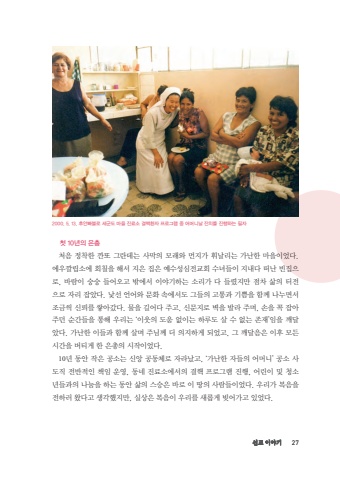 %uc120%uad50 %uc774%uc57c%uae30 27%uccab 10%ub144%uc758 %uc740%ucd1d%ucc98%uc74c %uc815%ucc29%ud55c %uae50%ub610 %uadf8%ub780%ub370%ub294 %uc0ac%ub9c9%uc758 %ubaa8%ub798%uc640 %uba3c%uc9c0%uac00 %ud718%ub0a0%ub9ac%ub294 %uac00%ub09c%ud55c %ub9c8%uc744%uc774%uc5c8%ub2e4. %uc5d0%uc6b0%uae54%ub9bd%uc18c%uc5d0 %ud68c%uce60%uc744 %ud574%uc11c %uc9c0%uc740 %uc9d1%uc740 %uc608%uc218%uc131%uc2ec%uc804%uad50%ud68c %uc218%ub140%ub4e4%uc774 %uc9c0%ub0b4%ub2e4 %ub5a0%ub09c %ube48%uc9d1%uc73c%ub85c, %ubc14%ub78c%uc774 %uc22d%uc22d %ub4e4%uc5b4%uc624%uace0 %ubc16%uc5d0%uc11c %uc774%uc57c%uae30%ud558%ub294 %uc18c%ub9ac%uac00 %ub2e4 %ub4e4%ub838%uc9c0%ub9cc %uc810%ucc28 %uc0b6%uc758 %ud130%uc804%uc73c%ub85c %uc790%ub9ac %uc7a1%uc558%ub2e4. %ub0af%uc120 %uc5b8%uc5b4%uc640 %ubb38%ud654 %uc18d%uc5d0%uc11c%ub3c4 %uadf8%ub4e4%uc758 %uace0%ud1b5%uacfc %uae30%uc068%uc744 %ud568%uaed8 %ub098%ub204%uba74%uc11c %uc870%uae08%uc529 %uc2e0%ub8b0%ub97c %uc313%uc544%uac14%ub2e4. %ubb3c%uc744 %uae38%uc5b4%ub2e4 %uc8fc%uace0, %uc2e0%ubb38%uc9c0%ub85c %ubcbd%uc744 %ubc1c%ub77c %uc8fc%uba70, %uc190%uc744 %uaf2d %uc7a1%uc544 %uc8fc%ub358 %uc21c%uac04%ub4e4%uc744 %ud1b5%ud574 %uc6b0%ub9ac%ub294 %u2018%uc774%uc6c3%uc758 %ub3c4%uc6c0 %uc5c6%uc774%ub294 %ud558%ub8e8%ub3c4 %uc0b4 %uc218 %uc5c6%ub294 %uc874%uc7ac%u2019%uc784%uc744 %uae68%ub2ec%uc558%ub2e4. %uac00%ub09c%ud55c %uc774%ub4e4%uacfc %ud568%uaed8 %uc0b4%uba70 %uc8fc%ub2d8%uaed8 %ub354 %uc758%uc9c0%ud558%uac8c %ub418%uc5c8%uace0, %uadf8 %uae68%ub2ec%uc74c%uc740 %uc774%ud6c4 %ubaa8%ub4e0 %uc2dc%uac04%uc744 %ubc84%ud2f0%uac8c %ud55c %uc740%ucd1d%uc758 %uc2dc%uc791%uc774%uc5c8%ub2e4.10%ub144 %ub3d9%uc548 %uc791%uc740 %uacf5%uc18c%ub294 %uc2e0%uc559 %uacf5%ub3d9%uccb4%ub85c %uc790%ub77c%ub0ac%uace0, %u2018%uac00%ub09c%ud55c %uc790%ub4e4%uc758 %uc5b4%uba38%ub2c8%u2019 %uacf5%uc18c %uc0ac%ub3c4%uc9c1 %uc804%ubc18%uc801%uc778 %ucc45%uc784 %uc6b4%uc601, %ub3d9%ub124 %uc9c4%ub8cc%uc18c%uc5d0%uc11c%uc758 %uacb0%ud575 %ud504%ub85c%uadf8%ub7a8 %uc9c4%ud589, %uc5b4%ub9b0%uc774 %ubc0f %uccad%uc18c%ub144%ub4e4%uacfc%uc758 %ub098%ub214%uc744 %ud558%ub294 %ub3d9%uc548 %uc0b6%uc758 %uc2a4%uc2b9%uc740 %ubc14%ub85c %uc774 %ub545%uc758 %uc0ac%ub78c%ub4e4%uc774%uc5c8%ub2e4. %uc6b0%ub9ac%uac00 %ubcf5%uc74c%uc744 %uc804%ud558%ub7ec %uc654%ub2e4%uace0 %uc0dd%uac01%ud588%uc9c0%ub9cc, %uc2e4%uc0c1%uc740 %ubcf5%uc74c%uc774 %uc6b0%ub9ac%ub97c %uc0c8%ub86d%uac8c %ube5a%uc5b4%uac00%uace0 %uc788%uc5c8%ub2e4.2000. 5. 13. %ud6c4%uc548%ube60%ube14%ub85c %uc138%uad70%ub3c4 %ub9c8%uc744 %uc9c4%ub8cc%uc18c %uacb0%ud575%ud658%uc790 %ud504%ub85c%uadf8%ub7a8 %uc911 %uc5b4%uba38%ub2c8%ub0a0 %uc794%uce58%ub97c %uc9c4%ud589%ud558%ub294 %ud544%uc790