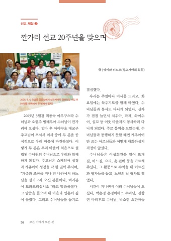36 %ubaa8%ub4e0 %uc774%uc5d0%uac8c %ubaa8%ub4e0 %uac832025. 9. 4. %uc694%uc149%ub3d9 %uacf5%ub3d9%uc2e4%uc5d0%uc11c %uc131%ubaa8%uc790%ub9e4%ud68c %uc6d4%ubd09%ud5cc%uc77c %ubaa8%uc784 %ud6c4(%uc544%ub7ab%uc904 %uc67c%ucabd%uc5d0%uc11c %ub450 %ubc88%uc9f8%uac00 %ud544%uc790)2005%ub144 3%uc6d4%uacbd %ucd5c%uc885%uc219 %uc544%uc6b0%uad6c%uc2a4%ud0c0 %uc218%ub140%ub2d8%uacfc %uc624%ud604%uc8fc %ubca8%ubca0%ub69c%uc544 %uc218%ub140%ub2d8%uc774 %uae50%uac00%ub9ac%uc5d0 %uc624%uc168%ub2e4. %uc5bc%ub9c8 %ud6c4 %uc544%uc57c%uafb8%ucd08 %ub300%uad50%uad6c %uc8fc%uad50%ub2d8%uc774 %uc624%uc154%uc11c %ubbf8%uc0ac %uc911%uc5d0 %ub450 %ubd84%uc744 %uacf5%uc2dd%uc801%uc73c%ub85c %uc6b0%ub9ac %ub9c8%uc744%uc5d0 %ud30c%uacac%ud558%uc168%ub2e4. %uc774%ub807%uac8c %ub450 %ubd84%uc740 %uc6b0%ub9ac %ub9c8%uc744%uc5d0 %ucc98%uc74c%uc73c%ub85c %uc124%ub9bd%ub41c %uc218%ub140%uc6d0%uc758 %uc218%ub140%ub2d8%uc73c%ub85c %uc6b0%ub9ac%uc640 %ud568%uaed8%ud558%uac8c %ub418%uc5c8%ub2e4. %uc8fc%uad50%ub2d8%uc740 %uc2a4%ud398%uc778%uc5b4 %uc131%uacbd%uacfc %ucf00%uce04%uc544%uc5b4 %uc131%uacbd%uc744 %uac01 %ud55c %uad8c%uc529 %uc8fc%uc2dc%uba70, %u201c%uac00%uc871%uacfc %uc870%uad6d%uc744 %ub5a0%ub098 %uba3c %ub098%ub77c%uc5d0%uc11c %ud558%ub290%ub2d8%uc744 %uc12c%uae30%uace0%uc790 %uc624%uc2e0 %ubd84%ub4e4%uc774%ub2c8, %uc5ec%ub7ec%ubd84%uc774 %ub3c4%uc640%ub4dc%ub9ac%uc2ed%uc2dc%uc624.%u201d%ub77c%uace0 %ub9d0%uc500%ud558%uc168%ub2e4. %uadf8 %ub9d0%uc500%uc744 %ub4e4%uc73c%uba70 %ub0b4 %ub9c8%uc74c%uacfc %uc601%ud63c%uc774 %uae4a%uc774 %uc6b8%ub838%ub2e4. %uadf8%ub9ac%uace0 %uc218%ub140%ub2d8%ub4e4%uc744 %ub3d5%uae30%ub85c %uacb0%uc2ec%ud588%ub2e4.%uc6b0%ub9ac%ub294 %uc8fc%uc77c%ub9c8%ub2e4 %ubbf8%uc0ac%ub97c %ub4dc%ub9ac%uace0, %ud654%uc694%uc77c%uc5d0%ub294 %ubb35%uc8fc%uae30%ub3c4%ub97c %ud568%uaed8 %ubc14%ucce4%ub2e4. %uc218%ub140%ub2d8%ub4e4%uacfc %ubd09%uc0ac%ub3c4 %ub2e4%ub2c8%uac8c %ub418%uc5c8%ub2e4. %uc2e0%uc790%uac00 %uc810%uc810 %ub298%uba74%uc11c %uce58%uc6b0%uc544, %ud30c%uaed8, %uc640%uc774%uc218%uc774, %uc2e4%uaf2c %ub4f1 %uc774%uc6c3 %ub9c8%uc744%uae4c%uc9c0 %ubd09%uc0ac%ud558%ub7ec %ub2e4%ub2c8%uac8c %ub418%uc5c8%ub2e4. %uc8fc%ub85c %ud1b5%uc5ed%uc744 %ub3c4%uc654%ub294%ub370, %uc218%ub140%ub2d8%ub4e4%uacfc %ub3d9%ud589%ud558%uc9c0 %ubabb%ud560 %ub54c%uba74 %ucf00%ucd94%uc544%uc5b4%ub9cc %uc4f0%ub294 %uc5b4%ub974%uc2e0%ub4e4%uacfc %uc5b4%ub5bb%uac8c %ub300%ud654%ud558%uc2e4%uc9c0 %uac71%uc815%uc774 %uc55e%uc130%ub2e4. %uc218%ub140%ub2d8%ub4e4%uc740 %uc5ec%uc131%ud68c%uad00%uc744 %uc5f4%uc5b4 %ub728%uac1c%uc9c8, %ubc14%ub290%uc9c8, %uc694%ub9ac, %uc637 %ud310%ub9e4 %ub4f1%uc744 %uac00%ub974%uccd0 %uc8fc%uc168%ub2e4. %uadf8 %ud65c%ub3d9%uc73c%ub85c %uc218%uc775%uc744 %ub0b4 %uc5b4%ub974%uc2e0%uacfc %ubcd1%uc790%ub4e4%uc744 %ub3d5%uace0, %ub178%uc778%uc758 %ub0a0 %ud589%uc0ac%ub3c4 %uc5f4%uc5c8%ub2e4.%uc2dc%uac04%uc774 %uc9c0%ub098%uba74%uc11c %uc5ec%ub7ec %uc218%ub140%ub2d8%ub4e4%uc774 %uc624%uc168%ub2e4. %ubc15%uc740%uacbd %uc740%uacbd%uc544%ub15c%uc2a4 %uc218%ub140%ub2d8, %uae40%ud5a5%ub828 %ub9c8%ub9ac%ud6c4%uaf2c %uc218%ub140%ub2d8, %ubc15%uc18c%ud604 %uc694%ud55c%ub9c8%ub4e4%uc120%uad50 %uccb4%ud5d8 %u278b %uae50%uac00%ub9ac %uc120%uad50 20%uc8fc%ub144%uc744 %ub9de%uc73c%uba70%uae00 | %uc5d8%ube44%ub77c %ud2f0%ub178%ucf54(%uc131%ubaa8%uc790%ub9e4%ud68c %ud68c%uc6d0)
