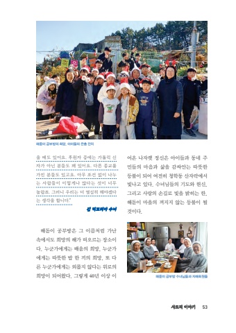 %uc0ac%ub3c4%uc9c1 %uc774%uc57c%uae30 53%ud574%ub3cb%uc774 %uacf5%ubd80%ubc29%uc740 %uadf8 %uc774%ub984%ucc98%ub7fc %uac00%ub09c %uc18d%uc5d0%uc11c%ub3c4 %ud76c%ub9dd%uc758 %ud574%uac00 %ub5a0%uc624%ub974%ub294 %uc7a5%uc18c%uc774%ub2e4. %ub204%uad70%uac00%uc5d0%uac8c%ub294 %ubc30%uc6c0%uc758 %ud76c%ub9dd, %ub204%uad70%uac00%uc5d0%uac8c%ub294 %ub530%ub73b%ud55c %ubc25 %ud55c %ub07c%uc758 %ud76c%ub9dd, %ub610 %ub2e4%ub978 %ub204%uad70%uac00%uc5d0%uac8c%ub294 %uc678%ub86d%uc9c0 %uc54a%ub2e4%ub294 %uc704%ub85c%uc758 %ud76c%ub9dd%uc774 %ub418%uc5b4%uc654%ub2e4. %uadf8%ub807%uac8c 40%ub144 %uc774%uc0c1 %uc774%uc5b4%uc628 %ub098%uc790%ub81b %uc815%uc2e0%uc740 %uc544%uc774%ub4e4%uacfc %ub3d9%ub124 %uc8fc%ubbfc%ub4e4%uc758 %ub9c8%uc74c%uacfc %uc0b6%uc744 %uac10%uc2f8%uc548%ub294 %ub530%ub73b%ud55c %ub4f1%ubd88%uc774 %ub418%uc5b4 %uc5ec%uc804%ud788 %uccad%ud559%ub3d9 %uc0b0%uc790%ub77d%uc5d0%uc11c %ube5b%ub098%uace0 %uc788%ub2e4. %uc218%ub140%ub2d8%ub4e4%uc758 %uae30%ub3c4%uc640 %ud5cc%uc2e0, %uadf8%ub9ac%uace0 %uc0ac%ub791%uc758 %uc190%uae38%ub85c %ube5b%uc744 %ubc1d%ud788%ub294 %ud55c, %ud574%ub3cb%uc774 %ub9c8%uc744%uc758 %uaebc%uc9c0%uc9c0 %uc54a%ub294 %ub4f1%ubd88%uc774 %ub420 %uac83%uc774%ub2e4.%ud574%ub3cb%uc774 %uacf5%ubd80%ubc29%uc758 %ud76c%ub9dd, %uc544%uc774%ub4e4%uc758 %uc740%ucd1d %uc794%uce58%ud574%ub3cb%uc774 %uacf5%ubd80%ubc29 %uc218%ub140%ub2d8%ub4e4%uacfc %uc790%ub9e4%ud68c%uc6d0%ub4e4%uc744 %ub54c%ub3c4 %uc788%uc5b4%uc694. %ud6c4%uc6d0%uc790 %uc911%uc5d0%ub294 %uac00%ud1a8%ub9ad %uc2e0%uc790%uac00 %uc544%ub2cc %ubd84%ub4e4%ub3c4 %uaf64 %uc788%uc5b4%uc694. %ub2e4%ub978 %uc885%uad50%ub97c%uac00%uc9c4 %ubd84%ub4e4%ub3c4 %uc788%uace0%uc694. %uc544%ubb34 %uc870%uac74 %uc5c6%uc774 %ub098%ub204%ub294 %uc0ac%ub78c%ub4e4%uc774 %uc774%ub807%uac8c%ub098 %ub9ce%ub2e4%ub294 %uac83%uc774 %ub108%ubb34%ub180%ub78d%uc8e0. %uadf8%ub7ec%ub2c8 %uc6b0%ub9ac%ub294 %ub354 %uc5f4%uc2ec%ud788 %ud574%uc57c%uaca0%ub2e4%ub294 %uc0dd%uac01%uc744 %ud569%ub2c8%ub2e4.%u201d%uae40 %ube45%ud1a0%ub9ac%uc544 %uc218%ub140