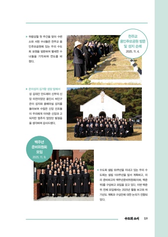 %ucc9c%uc8fc%uad50%uc6a9%uc778%ucd94%ubaa8%uacf5%uc6d0 %ubc29%ubb38%ubc0f %uc131%uc9c0 %uc21c%ub8402025. 11. 4.%u25b6 %uc704%ub839%uc131%uc6d4 %uccab %uc8fc%uac04%uc744 %ub9de%uc544 %uc218%ub828%uc18c%uc640 %uc11c%uc6d0 %uc218%ub140%ub4e4%uc740 %ucc9c%uc8fc%uad50 %uc6a9%uc778%ucd94%ubaa8%uacf5%uc6d0%uc5d0 %uc788%ub294 %uc6b0%ub9ac %uc218%ub3c4%ud68c %ubb18%uc6d0%uc744 %ubc29%ubb38%ud558%uc5ec %ubcc4%uc138%ud55c %uc218%ub140%ub4e4%uc744 %uae30%uc5b5%ud558%uba70 %uc5f0%ub3c4%ub97c %ubc14%ucce4%ub2e4.%u25b6 %uc740%uc774%uc131%uc9c0 %uae40%uac00%ud56d %uc131%ub2f9 %uc55e%uc5d0%uc11c%uc131 %uae40%ub300%uac74 %uc548%ub4dc%ub808%uc544 %uc2e0%ubd80%uc758 %uc2e0%uc559 %ud130%uc804%uc774%uc5c8%ub358 %uc6a9%uc778%uc2dc %ucc98%uc778%uad6c %uc740%uc774 %uc131%uc9c0%uc640 %uace8%ubc30%ub9c8%uc2e4 %uc131%uc9c0%ub97c %ub3cc%uc544%ubcf4%uba70 %uc218%ub9ce%uc740 %uc2e0%uc559 %uc120%uc870%ub4e4%uc774 %uc6b0%ub9ac%uc5d0%uac8c %uc774%uc5b4%uc900 %uc2e0%uc559%uacfc %uace0%ub418%uc9c0%ub9cc %uba48%ucd94%uc9c0 %uc54a%uc558%ub358 %ubc1c%uac78%uc74c%uc744 %uc0dd%uac01%ud558%uba70 %uac10%uc0ac%ub4dc%ub838%ub2e4.%ubc31%uc8fc%ub144%uc900%ube44%uc704%uc6d0%ud68c%ubaa8%uc7842025. 11. 9.%uc218%ub3c4%ud68c %uc18c%uc2dd 59%u25c0 %uc218%ub3c4%ud68c %uc124%ub9bd 93%uc8fc%ub144%uc744 %uc9c0%ub0b4%uace0 %uc788%ub294 %uc6b0%ub9ac %uc218%ub3c4%ud68c%ub294 %uc124%ub9bd 100%uc8fc%ub144%uc744 %uc55e%uc11c %uacc4%ud68d%ud558%uace0, %ubbf8%ub9ac %uc900%ube44%ud558%uace0%uc790 %ubc31%uc8fc%ub144%uc900%ube44%uc704%uc6d0%ud68c(%uc774%ud558, %ubc31%uc900%uc704)%ub97c %uad6c%uc131%ud558%uace0 %ubaa8%uc784%uc744 %uac16%uace0 %uc788%ub2e4. %uc774%ubc88 %ubc31%uc900%uc704 %uc804%uccb4 %ubaa8%uc784%uc5d0%uc11c%ub294 2025%ub144 %ud65c%ub3d9 %ubcf4%uace0%uc640 %ucc28%uae30%ub144%ub3c4 %uacc4%ud68d%uacfc %uad6c%uc0c1%uc548%uc5d0 %ub300%ud55c %ub17c%uc758%uac00 %uc9c4%ud589%ub418%uc5c8%ub2e4.